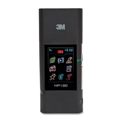 3M Commercial Office Supply Div. Pocket Projector, 4GB, 2-1/2"x6"x1-1/3", BlackPocketProjector MP180 provides great versatility as the ultimate in portable projection technology. Simply plug the mini projector into your digital media device and watch videos, photos and games come alive with images up to 80" in size and 32 lumens of brightness. Ideal for projecting files, charts and spreadsheets. Never leave a file behind with 4GB of internal memory and microSD card compatibility. Use Bluetooth or USB to transfer files in a few clicks. The MP180 even has Wi-Fi if you need to grab a file or browse the web on the go. Projector is fully equipped with an LED light source, two .75W speakers, two hours of battery life, a 3.5mm stereo jack and SVGA resolution (800 x 600). PocketProjector MP180 connects to virtually any gadget - computer, cell phone, iPod/iPhone or PDA to share files, photos and movies virtually anywhere. Projector includes a battery, wall charger, charger adapters, USB and computer cables, composite video cable (RCA), tripod, and soft protective pouch.