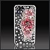 Enamel Pink Flowers & Leaves w Silver Bling 1 "Elite Collection" Luxury glass diamond case cover for Apple iPhone 4 4G Product Description | Sale & Buy at Cheap Price
